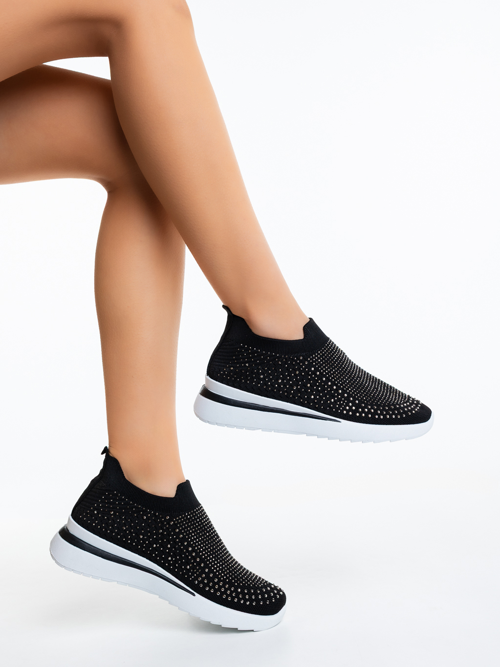 Γυναικεία αθλητικά παπούτσια μαύρα από ύφασμα με ασημί Vorana - Διάλεξε αυτό που σου ταιριάζει και ξεχώρισε
