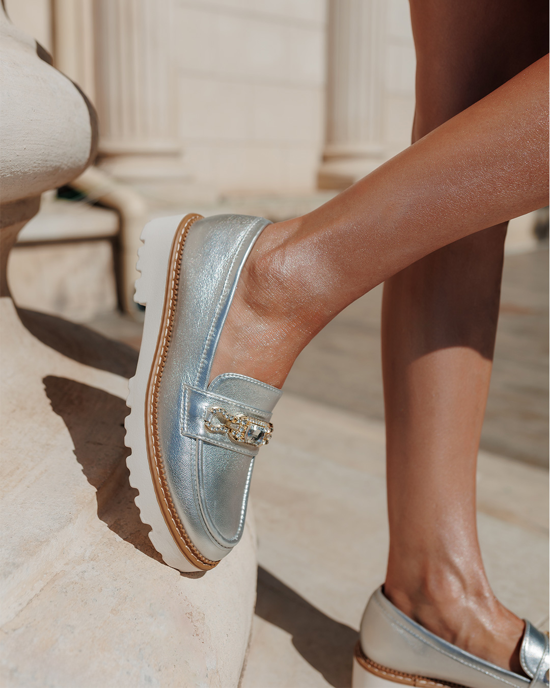 Γυναικεία μοκασίνια ασημί από οικολογικό δέρμα Jenima - Διάλεξε αυτό που σου ταιριάζει και ξεχώρισε