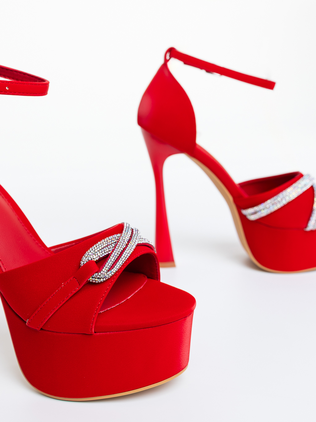 Γυναικεία πέδιλα με τακούνι και πλατφόρμα Estaria Κόκκινος - Λεπτομέρειες προιόντος