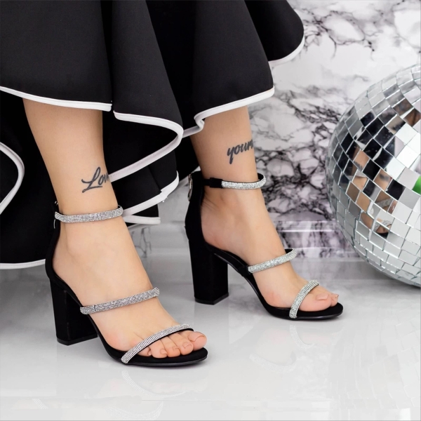 Γυναικεία σανδάλια μαύρα με τακούνι από ύφασμα Sariyah - Λεπτομέρειες προιόντος