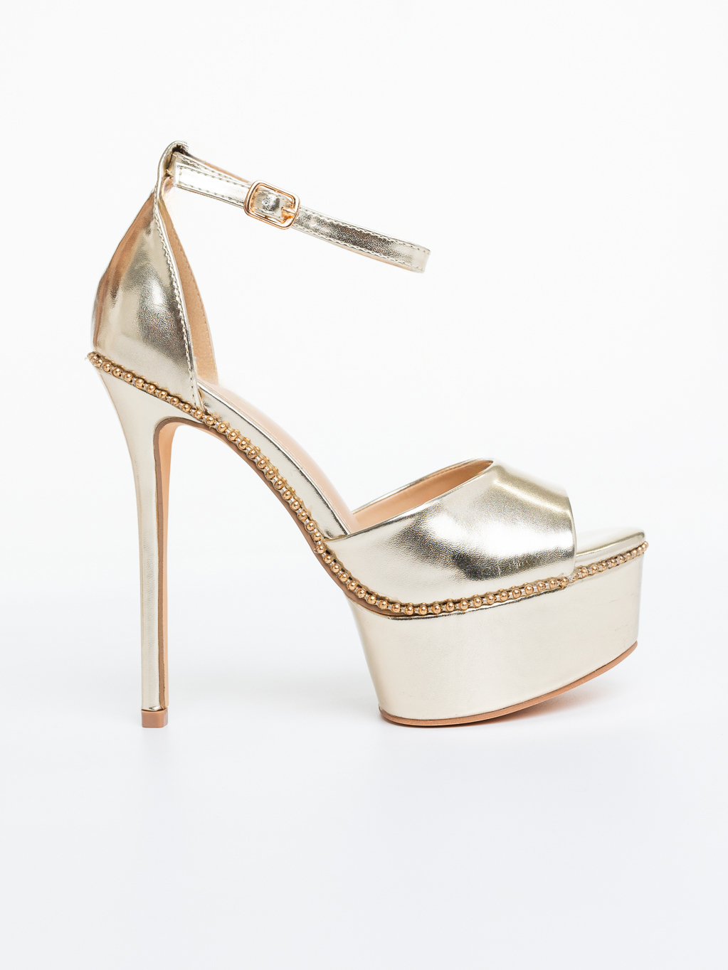 Γυναικεία σανδάλια με λεπτή τακούνι και πλατφόρμα Eviva Χρυσαφένιος - Λεπτομέρειες προιόντος