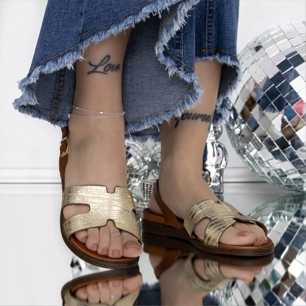 Γυναικεία σανδάλια χρυσαφί από οικολογικό δέρμα Oriora - Λεπτομέρειες προιόντος