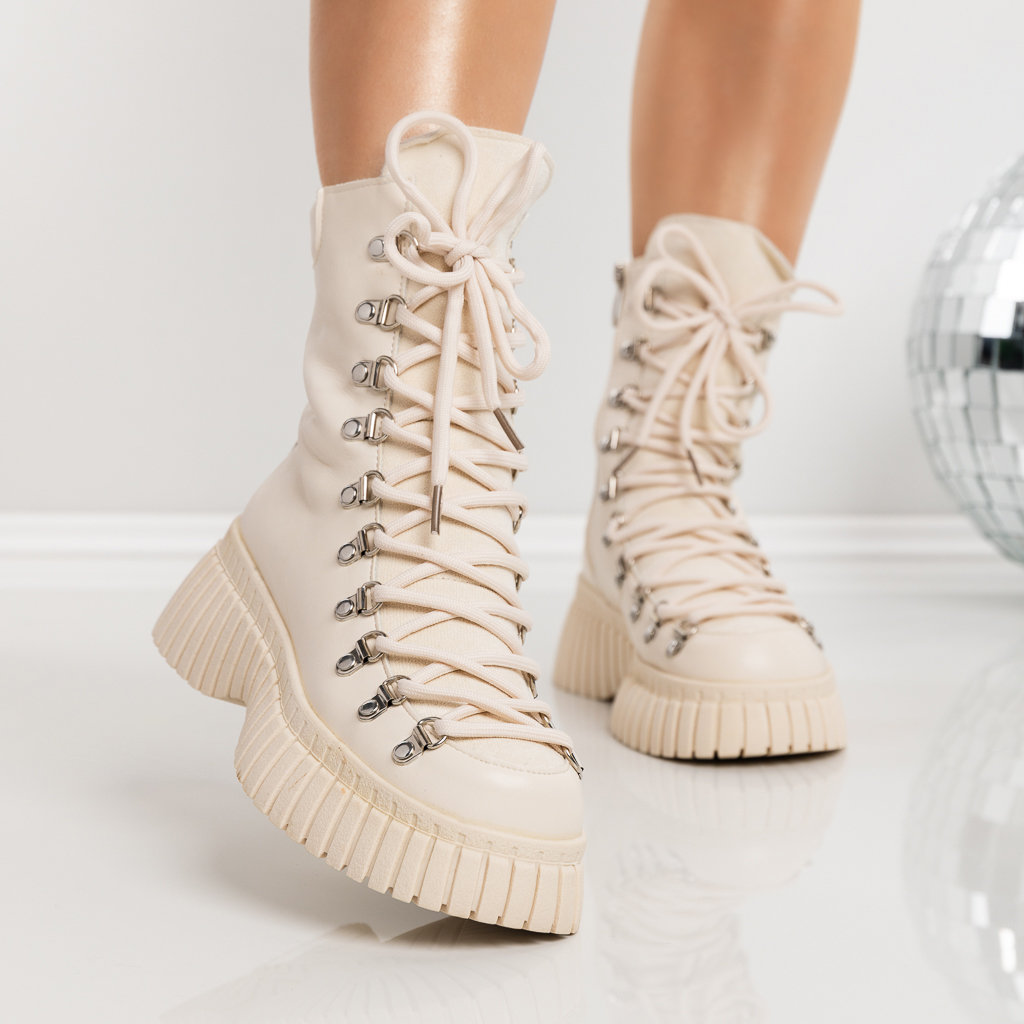 Γυναικείες μπότες με πλατφόρμα Brixley Μπεζ - Λεπτομέρειες προιόντος