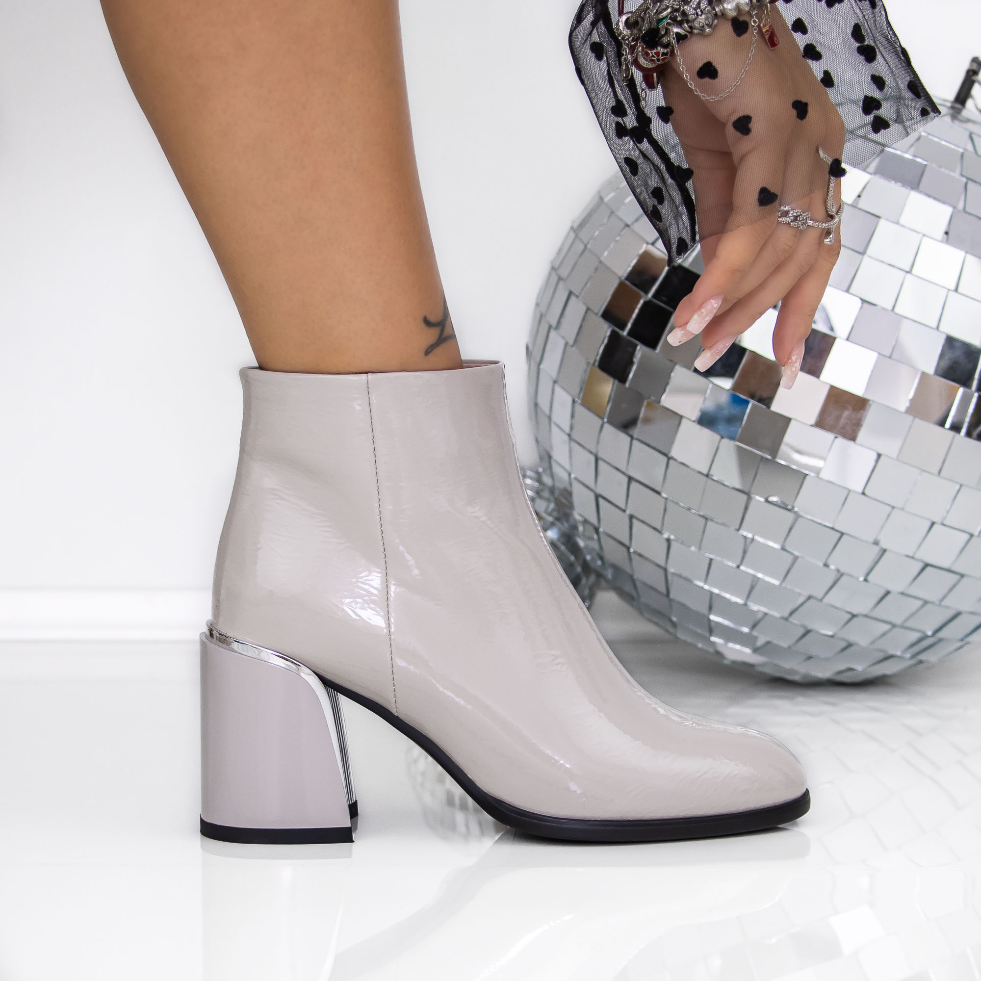 Μποτάκια με χοντρό τακούνι 3AD1 Γκρί Λεπτομέρειες προιόντος
